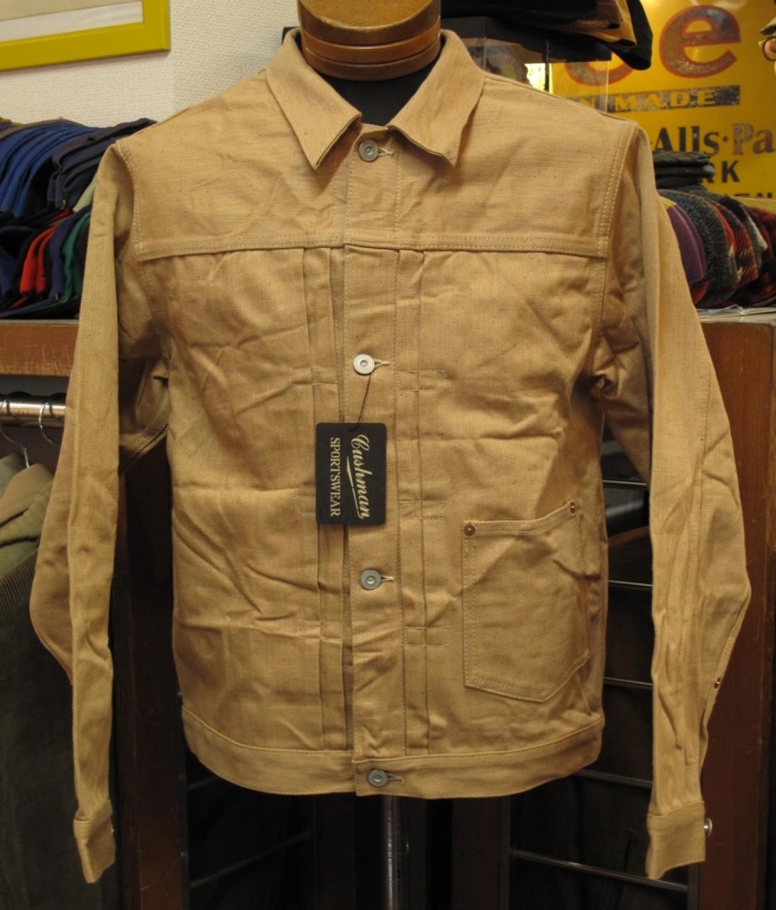 無染色のオーガニックコットンの茶綿をムラ糸に紡績、非常にヘビーでヴィンテージ感のあるダックを使用したジャケットです。