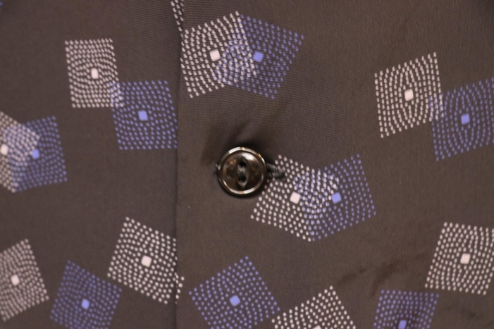 スタンダードなオープンカラーのデザインになり、ボタン一番上はループタイプ、裾はまっすぐのボックス型のデザインが特徴的なシャツです。